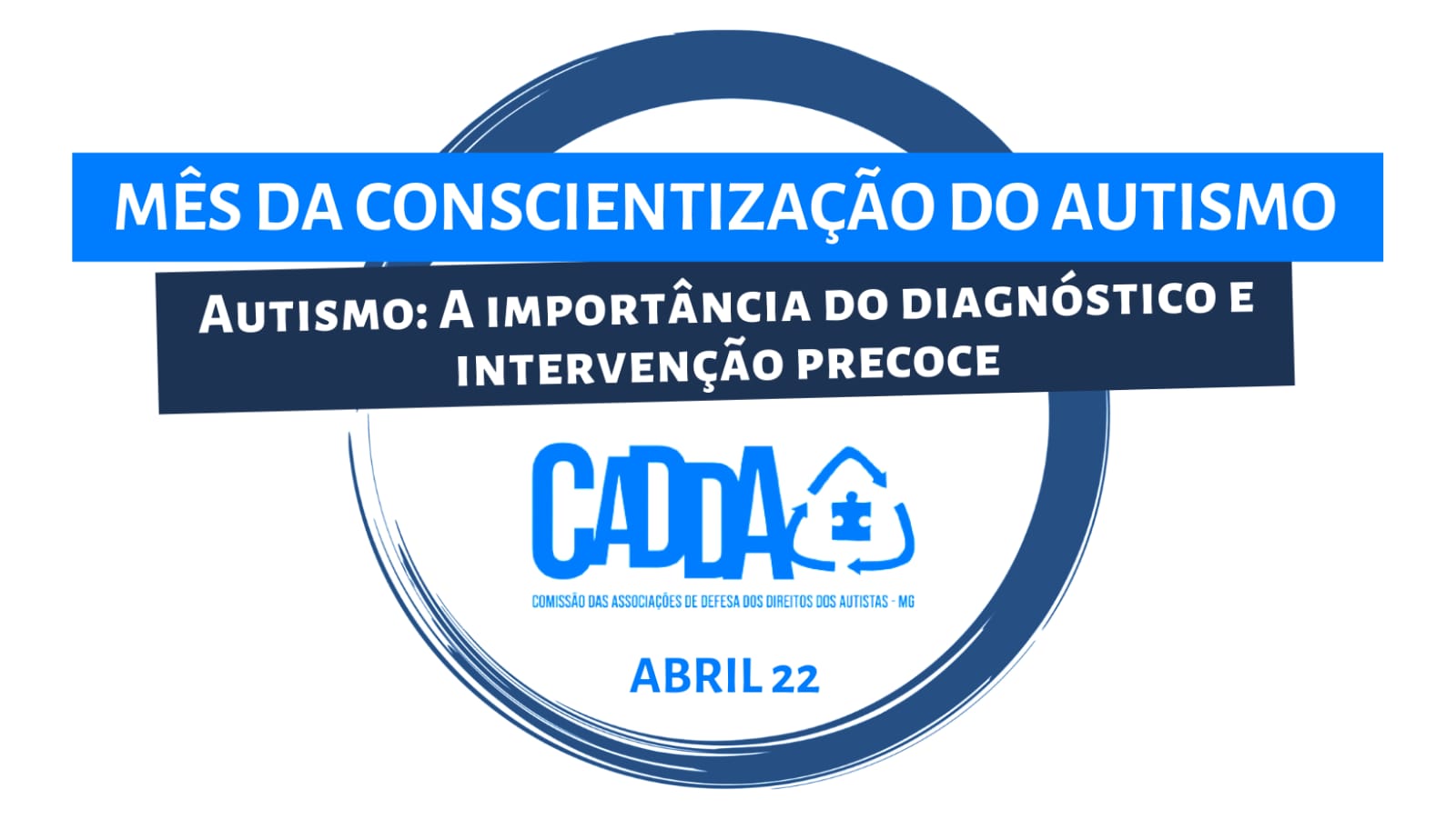 Com uma série de iniciativas que prometem mobilizar a sociedade para a necessária reflexão sobre a deficiência e o diagnóstico do TRANSTORNO DO ESPECTRO AUTISTA (TEA), a Comissão das Associações de Defesa dos Direitos dos Autistas – MG, divulga as primeiras ações dedicadas ao Mês da Conscientização sobre o Autismo, no próximo mês de abril. Com o tema “Autismo: a importância do diagnóstico e intervenção precoce” uma variada programação dará a dimensão de como a questão do autismo estará presente nos principais debates públicos.